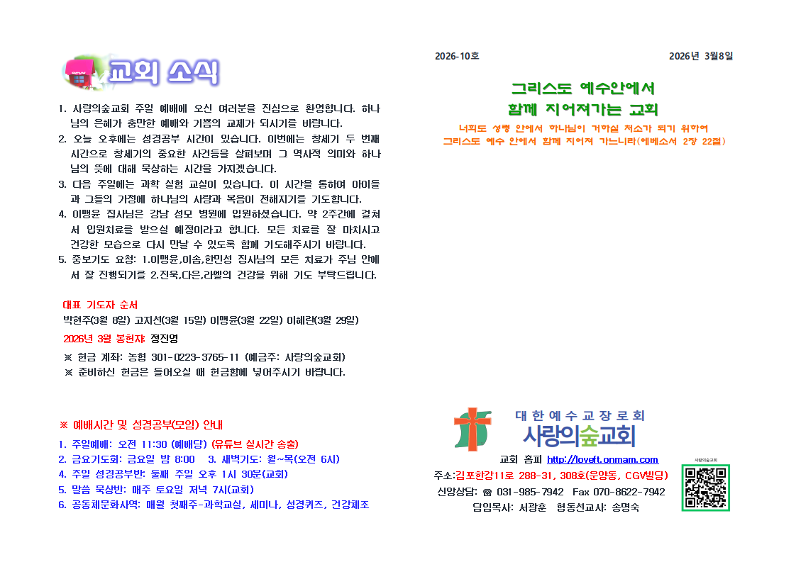 3월8일 교회소식입니다