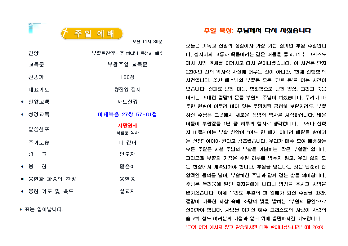 4월 5일 교회 소식입니다